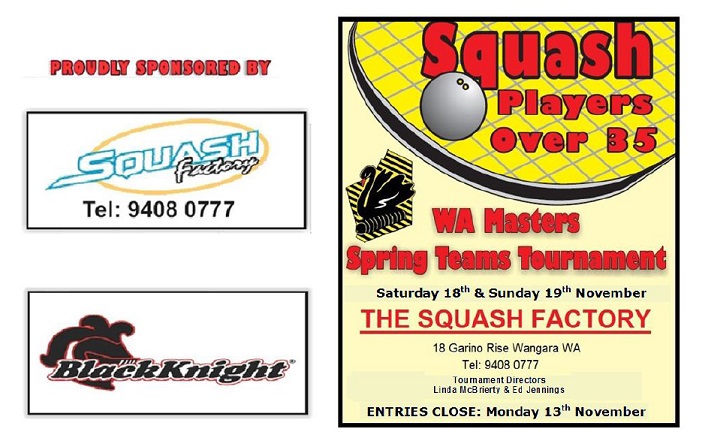 The 2017 WA Masters Spring Teams Tournament will be held on 18-19 November at The Squash Factory (18 Garino Rise, Wangara).