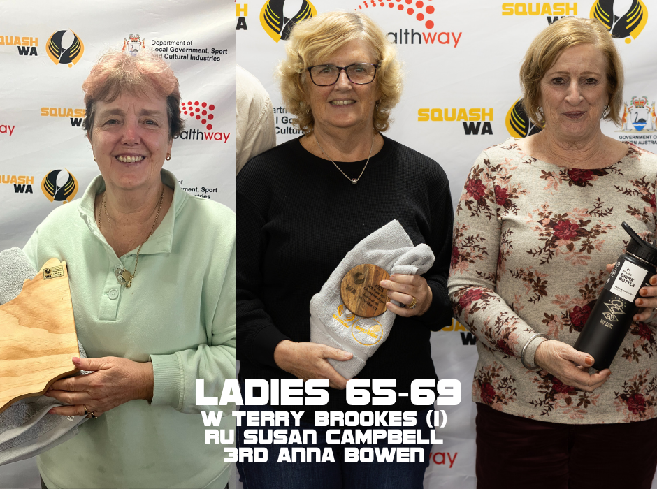 | 65-69 | Terry Brookes (1) | Susan Campbell | Anna Bowen |